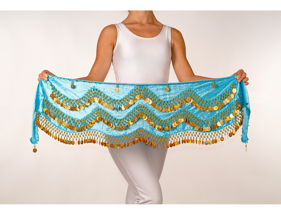 Şakira Kemeri Kadife Dalgalı Açık Mavi Altın Penez