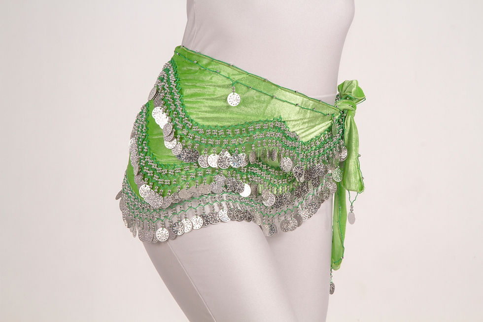 Şakira Kemeri Kadife Dalgalı Fıstık Yeşil Gümüş Penez